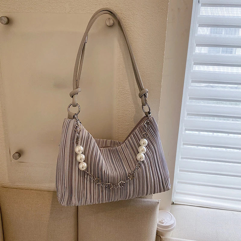 Soft Cloth Beaded Shoulder Bag for Women