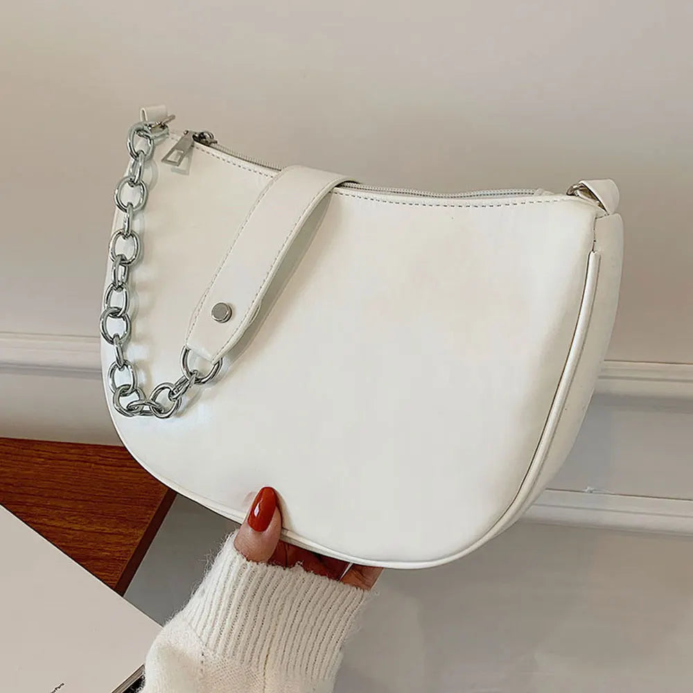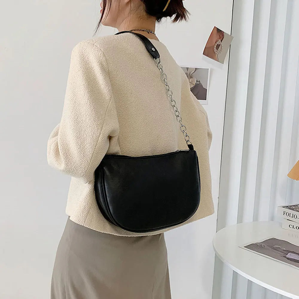 Stay stylish with this hobo underarm handbag made of soft leather. Features a chain clutch and adjustable shoulder strap.