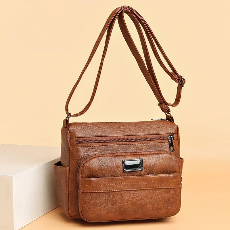 This stylish and practical leather bag is perfect for women on the go. It features multiple compartments for organizing your essentials.