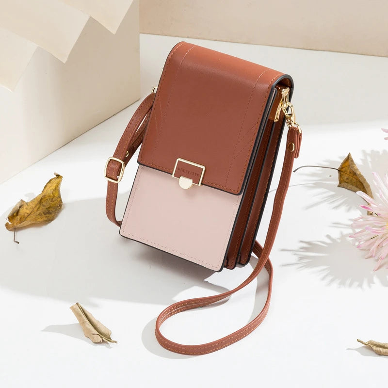 This stylish women's bag features a soft leather design with contrasting colors, suitable for keeping your essentials organized. It can be used as a wallet, cell phone purse, shoulder bag, or crossbody handbag.