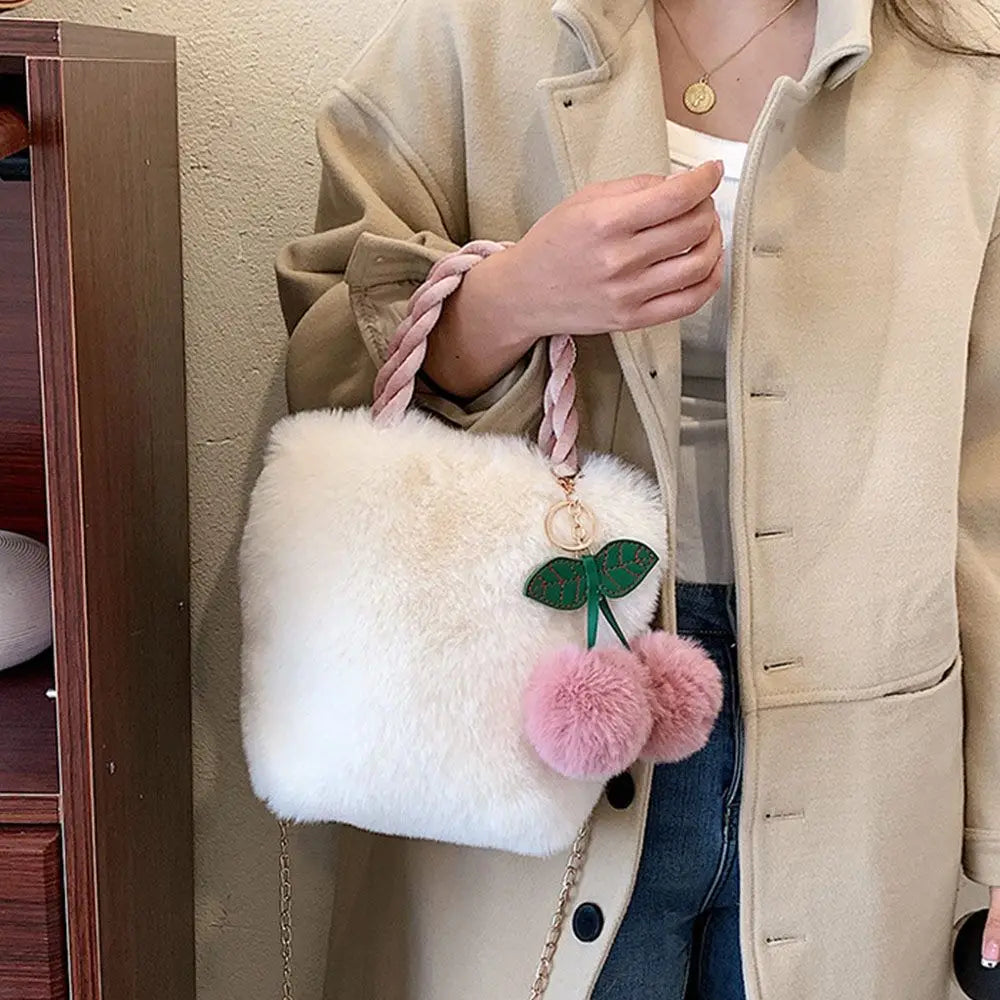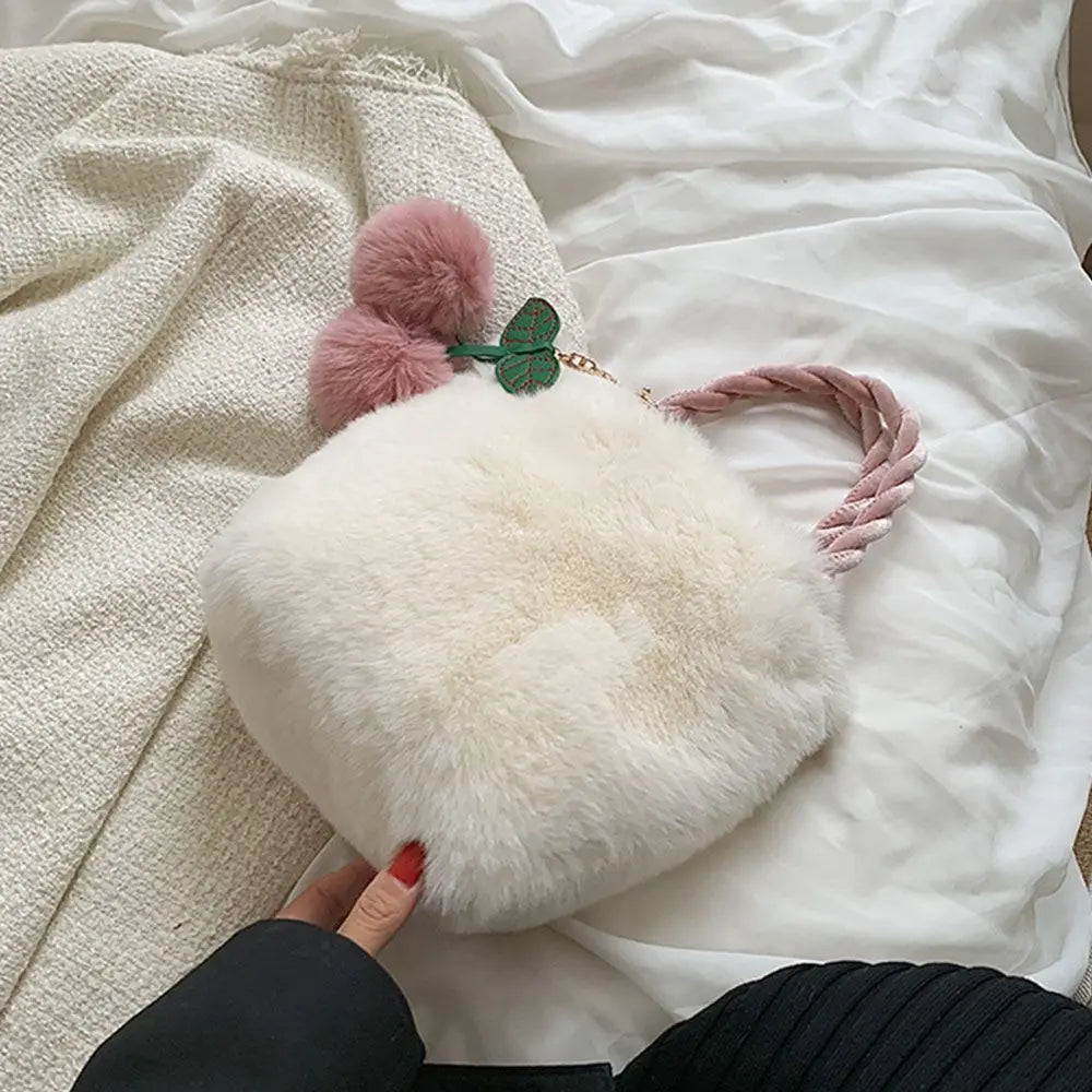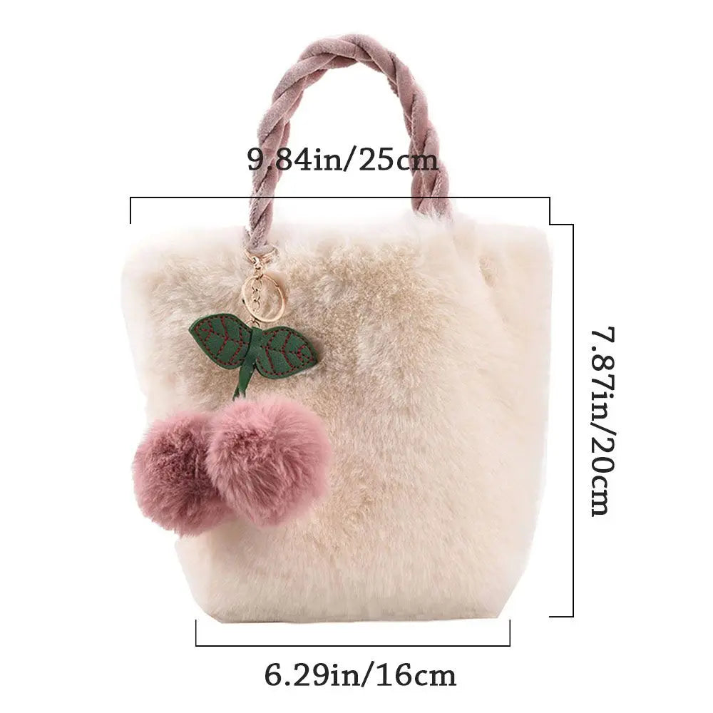 Stay stylish with these high-quality cherry handbags made of soft plush material. Perfect for shopping or everyday use.