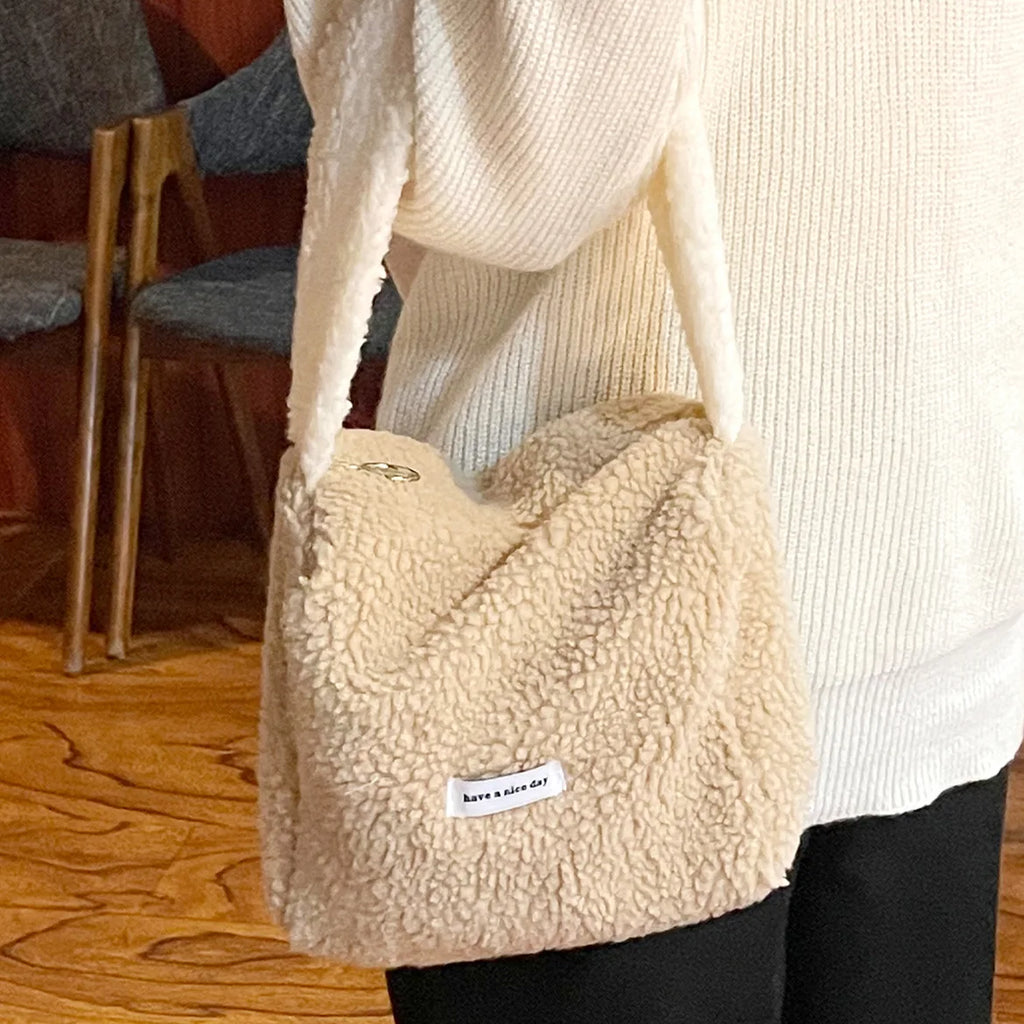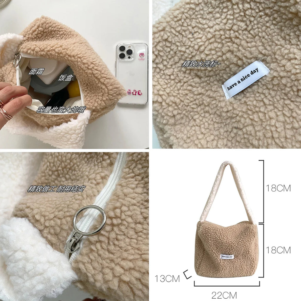 Soft Plush Handbag Faux Lamb Wool Shoulder Bag Girls Small Purse