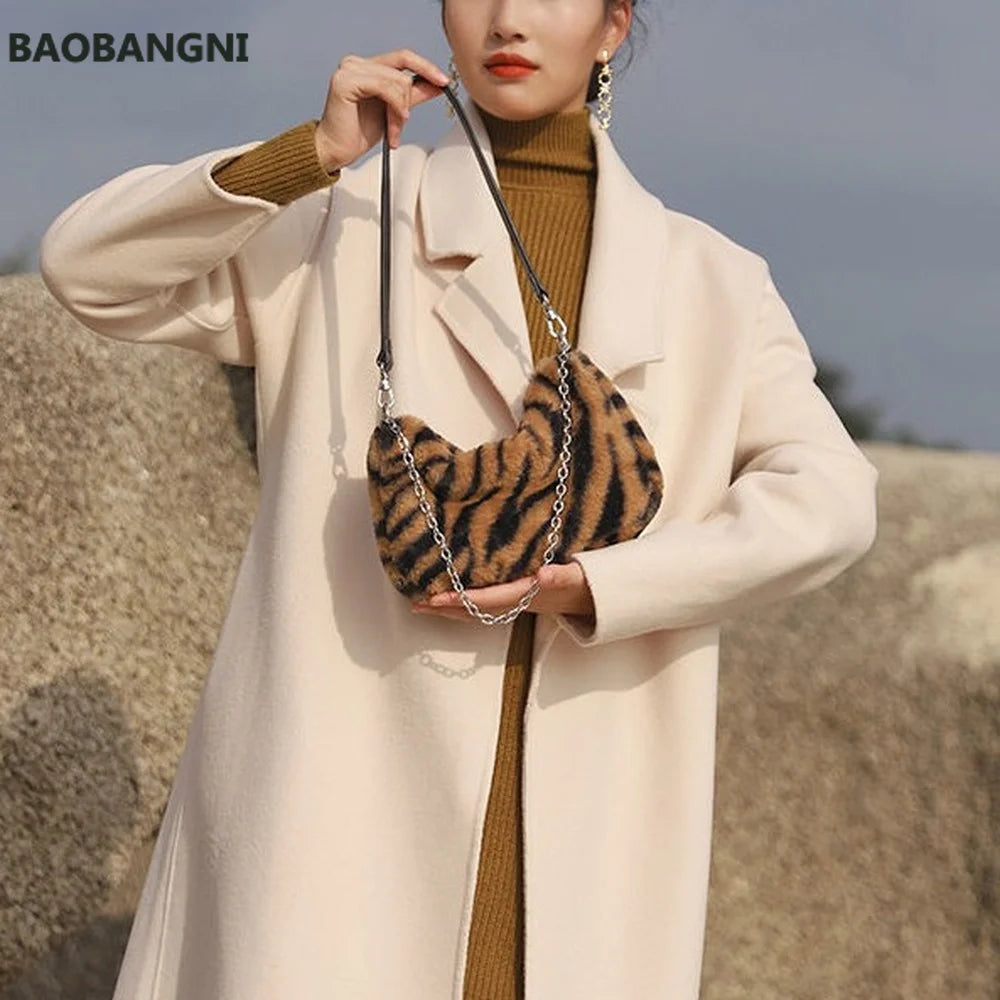 Soft Plush Leopard Print Women Shoulder Bag Faux Fur Ladies Tote Purse Handbag