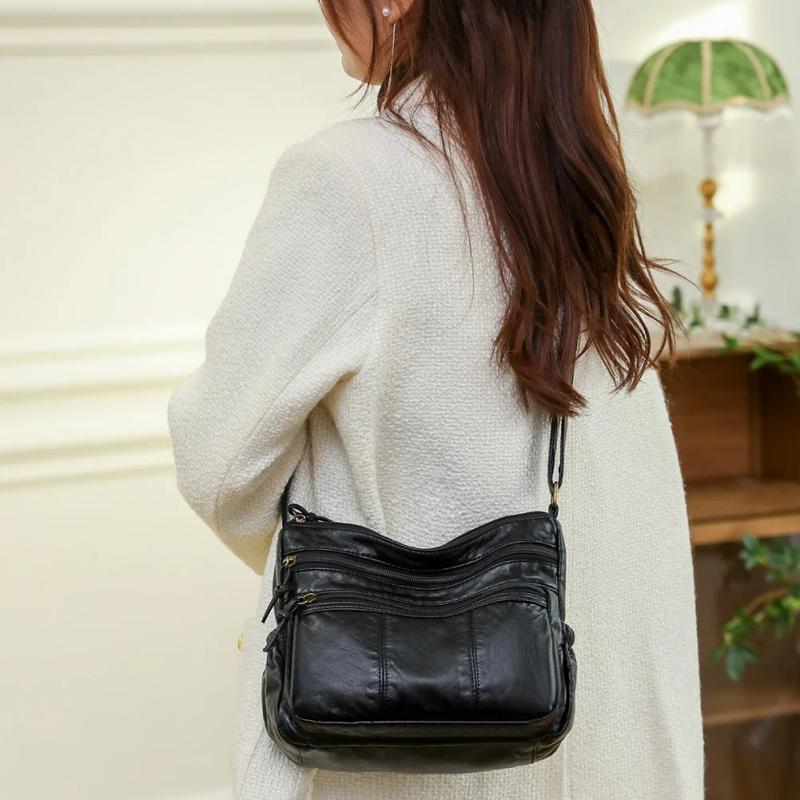 Soft PU Leather Ladies Handbags Multi-pocket Women Top Handle Satchel