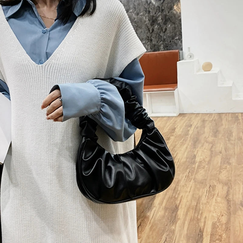 Soft PU Leather Pleated Underarm Bag Women Cloud Handbag