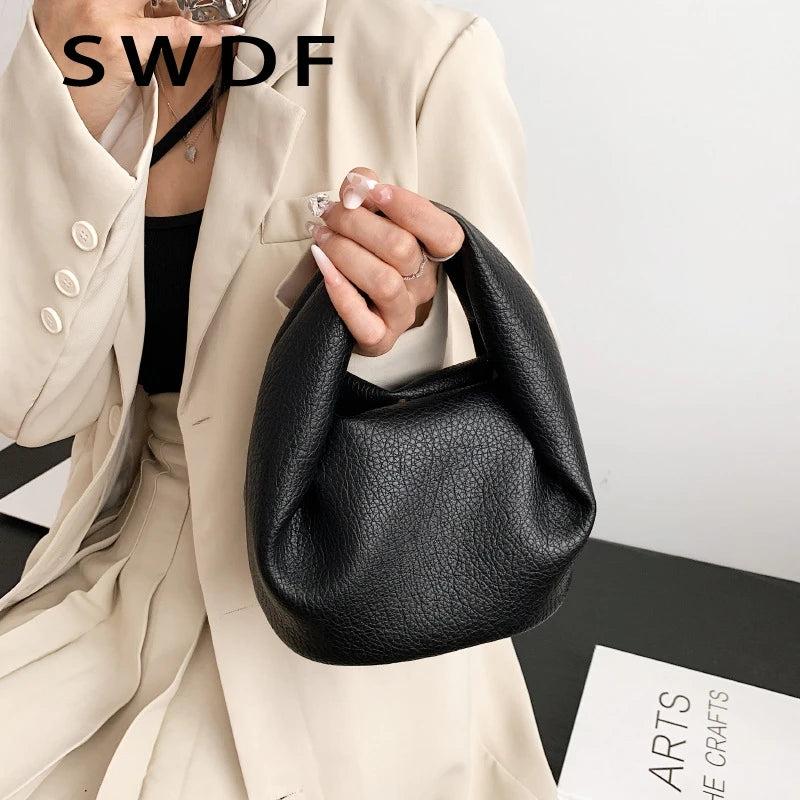 This mini tote bag is made of soft PU leather and features a shoulder crossbody design, perfect for any occasion. It's a stylish and versatile accessory for women.