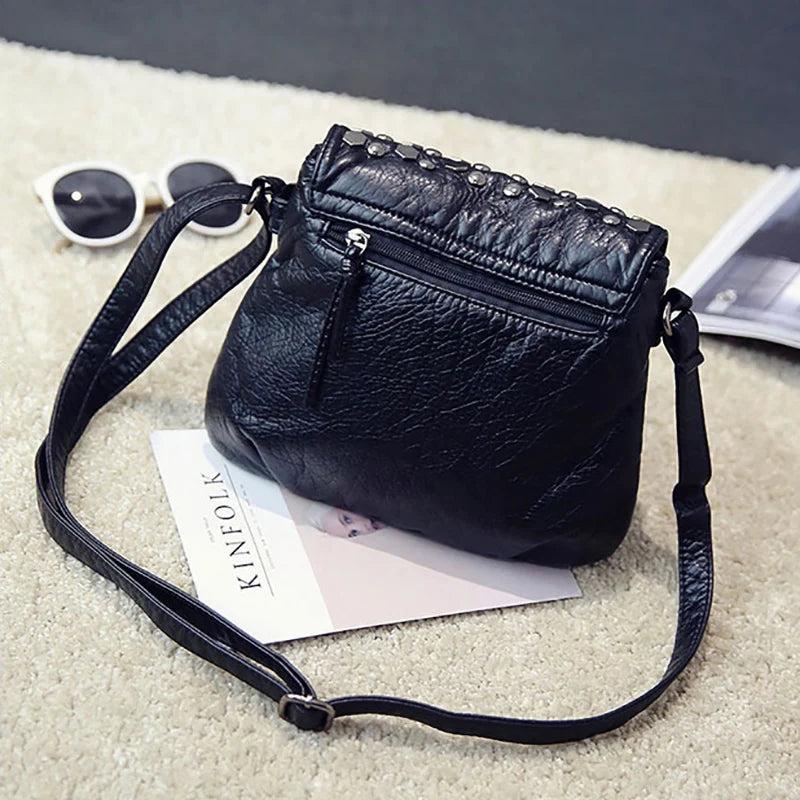 Soft Wash PU Leather Shoulder Bag for Women Rivet Handbag Crossbody Purse