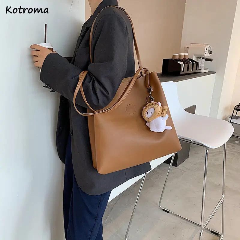 Solid Large-capacity PU Leather Shoulder Bag for Women