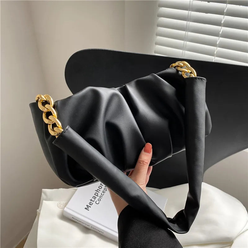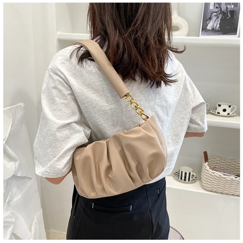 Solid Pleated Tote Bag Soft Leather Women Handbag Shoulder Armpit Bag
