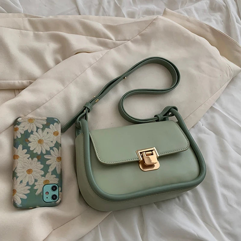 Spring Underarm Shoulder Bags Women Contrast PU Leather Flap Handbag Clutch