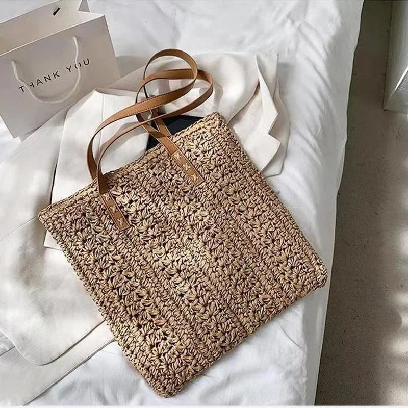 Elevate your summer style with this trendy square hollow straw beach bag. Perfect for a day at the beach or shopping. It's lightweight and stylish for all your summer adventures.