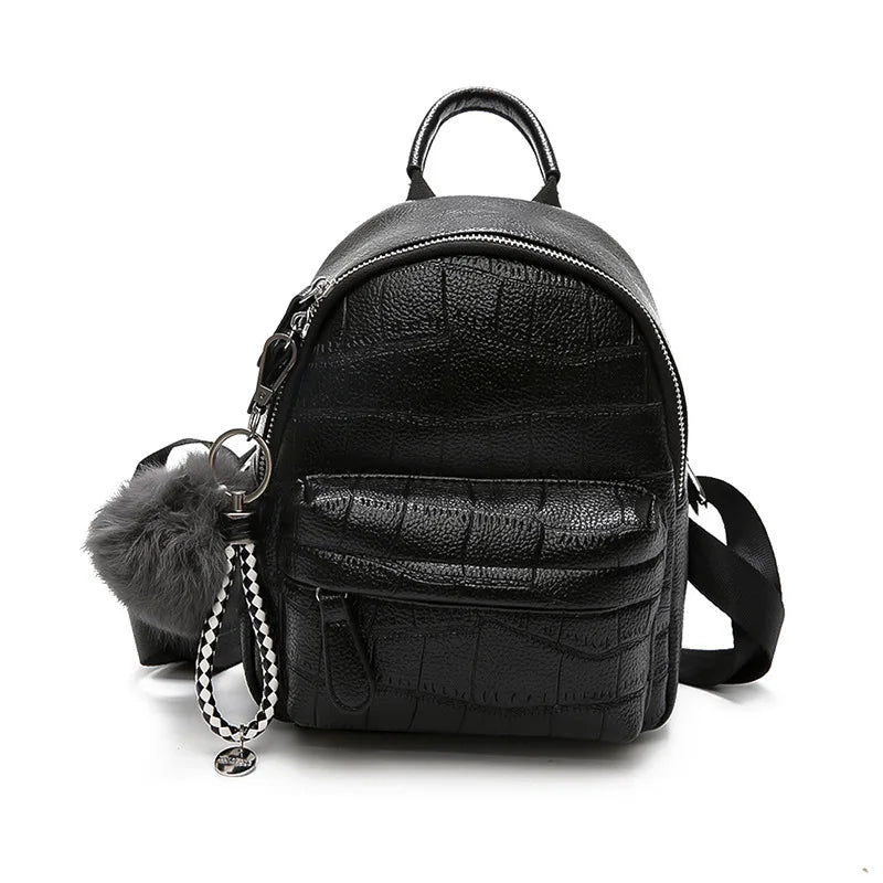 This small ladies casual daypack is perfect for girls on the go. Made of durable stone leather, it features a cute hairball sac rucksack design.