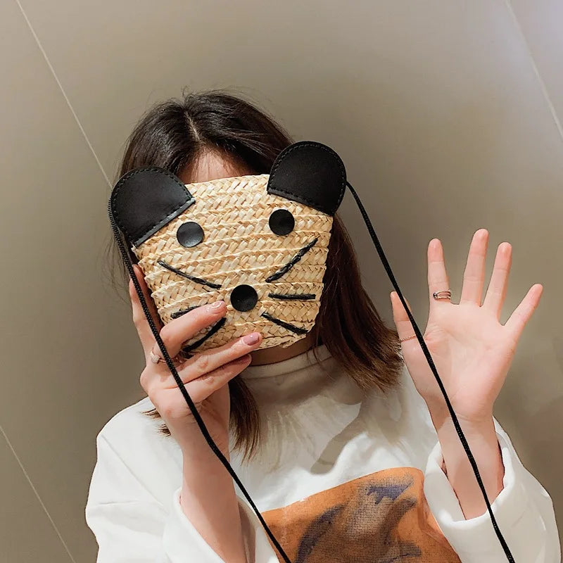 Straw Bag Girl Beach Mini-pocket Bag with Puppy Style
