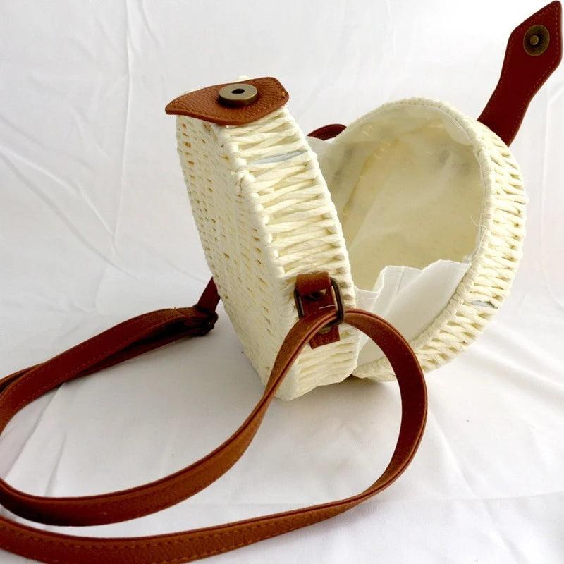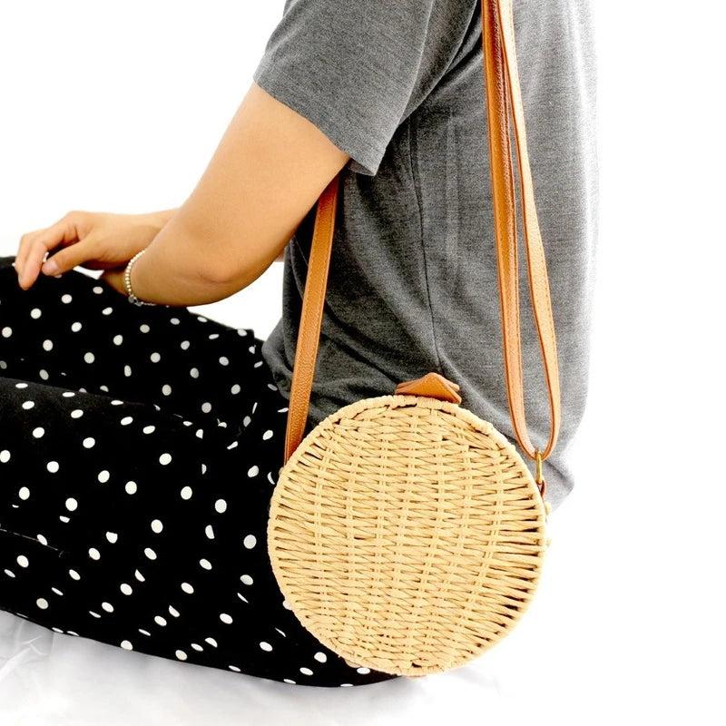 • Hand-woven straw bag with moon shape design