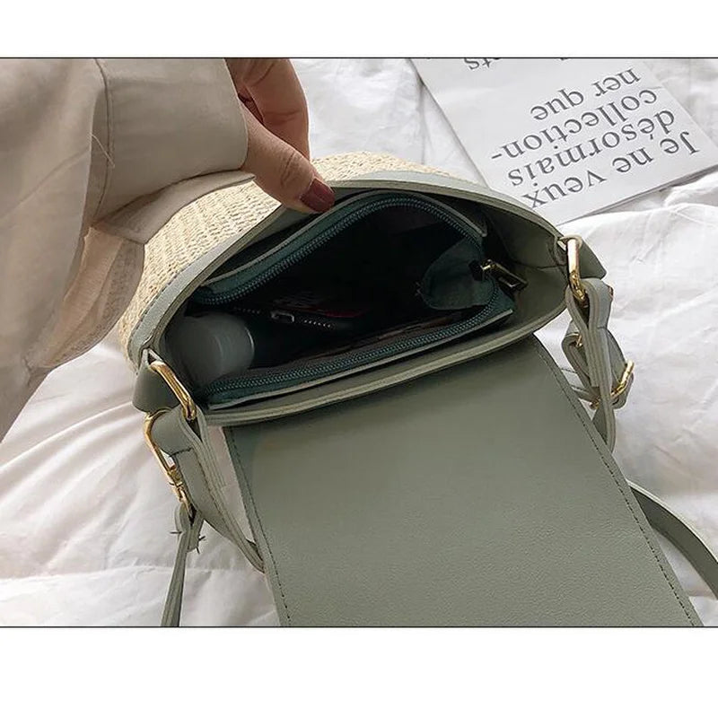 Straw Bucket Bag Women Summer Messenger Rattan Beach Travel Purse Shoulder