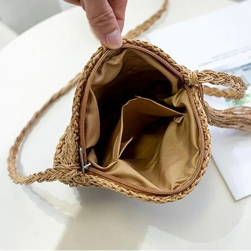 Straw Circular Cross Body Bag Tassel Holiday Beach Retro Women Shoulder Bags