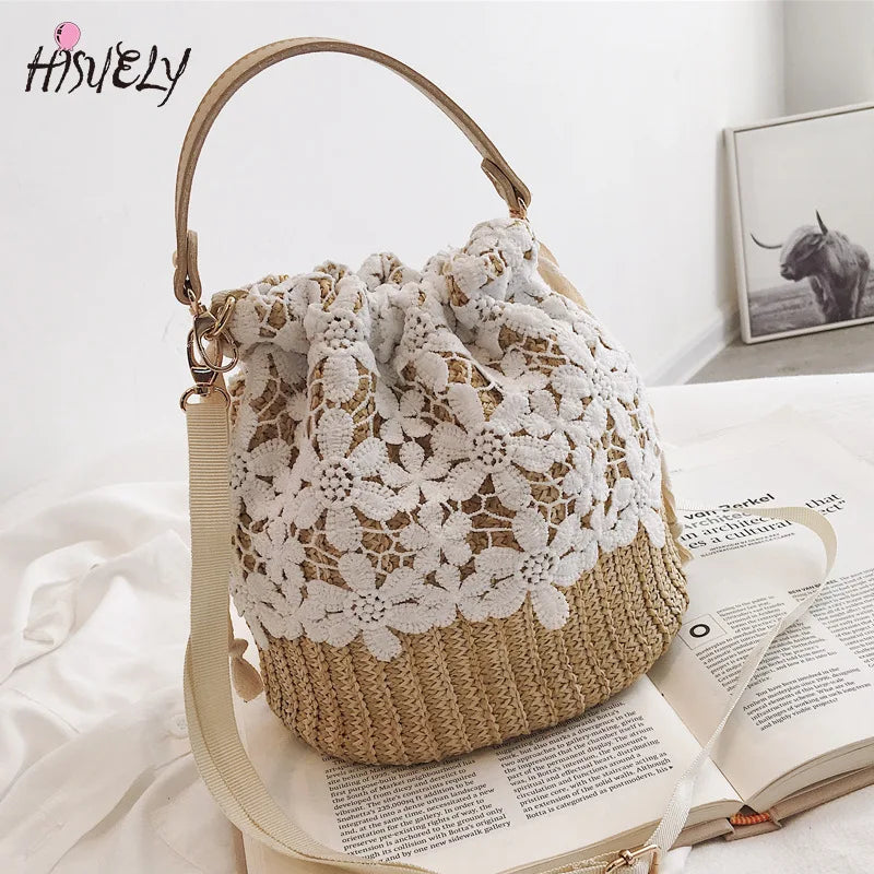 Elevate your summer style with this chic straw woven bucket bag, perfect for travel and everyday use. Stay on-trend with this versatile crossbody bag.