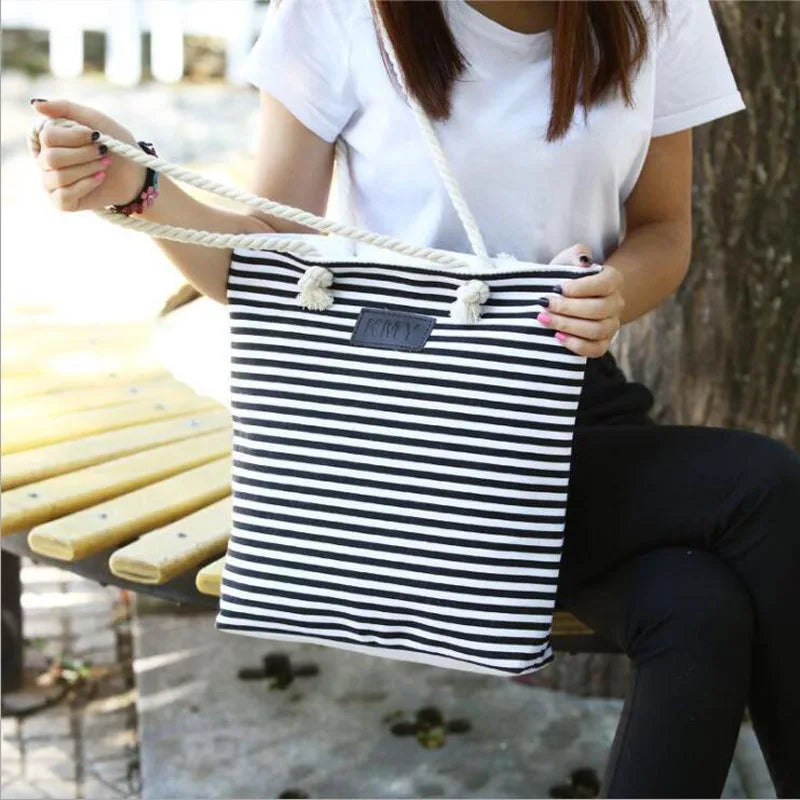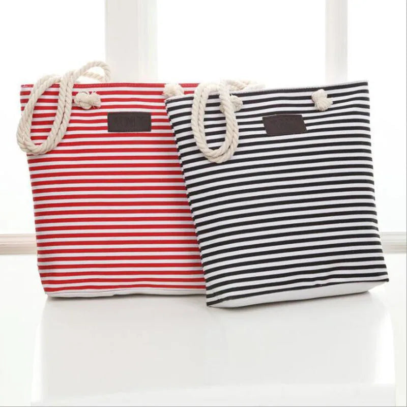 Striped Canvas Beach Tote Bag High Women Girls Shoulder Handbag