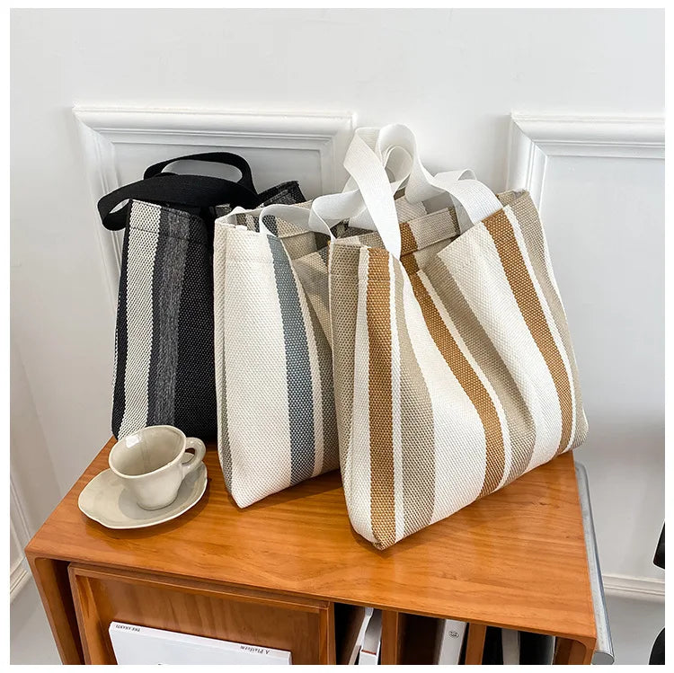 Striped Canvas Handbag Large-Capacity Shoulder Bag