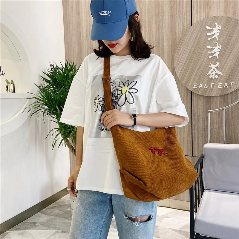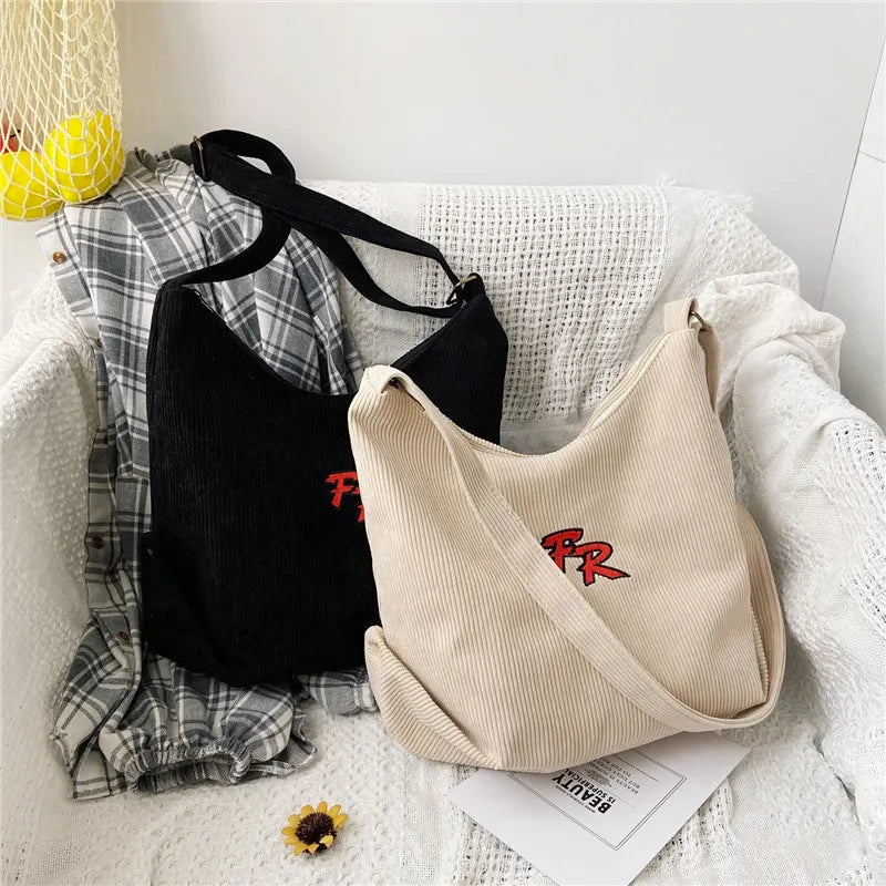 Striped Corduroy Crossbody Shoulder Bag Eco Cloth Purse