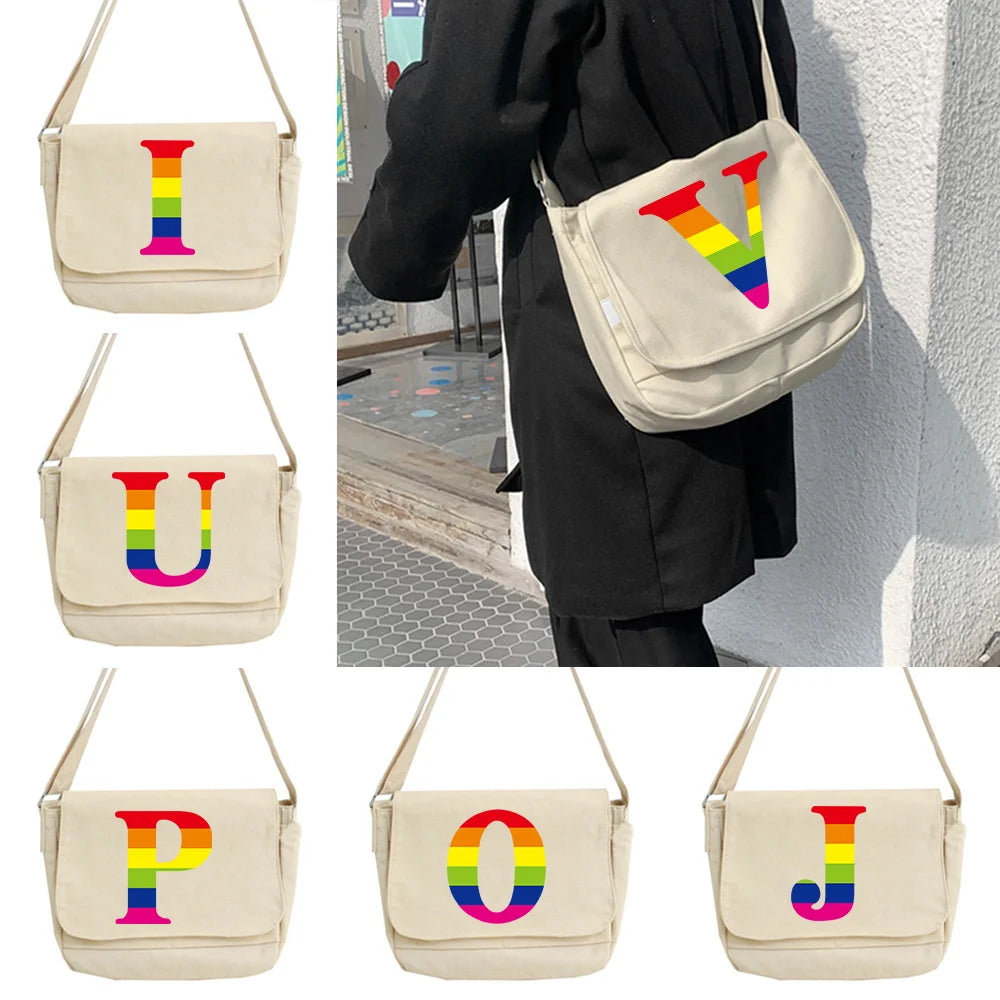 Stay trendy with this versatile rainbow pattern messenger bag perfect for students. Features a portable one-shoulder design.