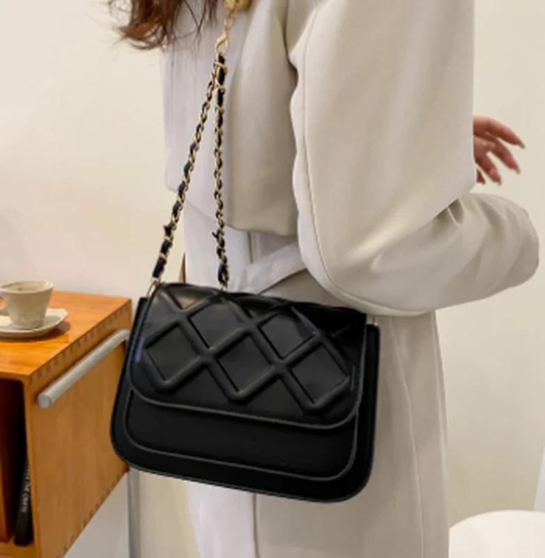 Elevate your style with this fashionable small square bag featuring a trendy lozenge pattern design. Made of high-quality leather, this bag is perfect for complementing any outfit.