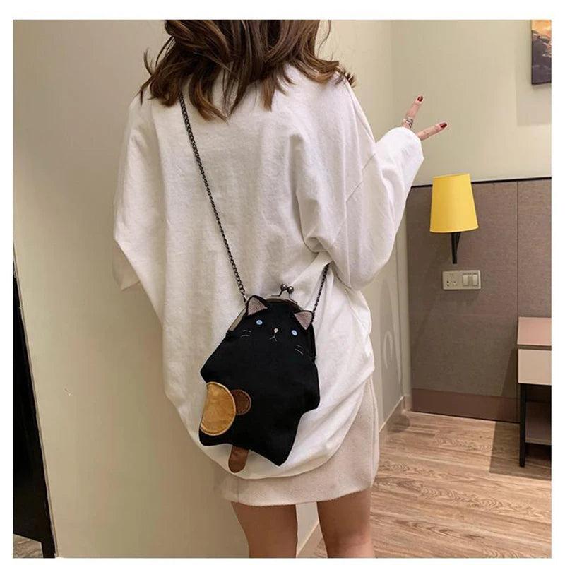 This stylish handbag is perfect for summer outings. It features a cute cat shape design with a chain shoulder strap. Made of high-quality PU leather, this bag is durable and fashionable.