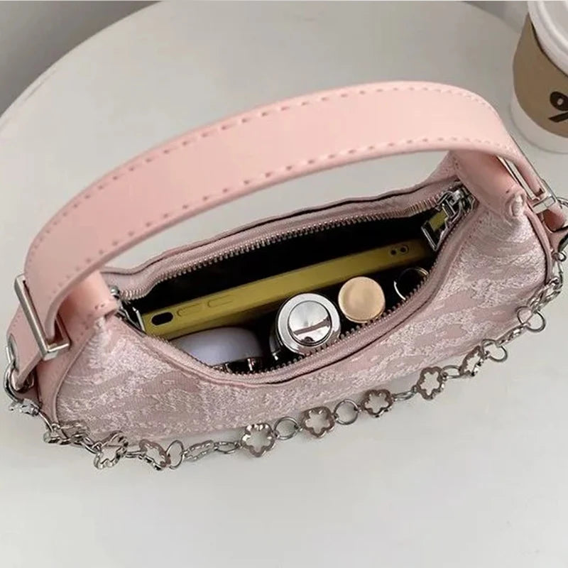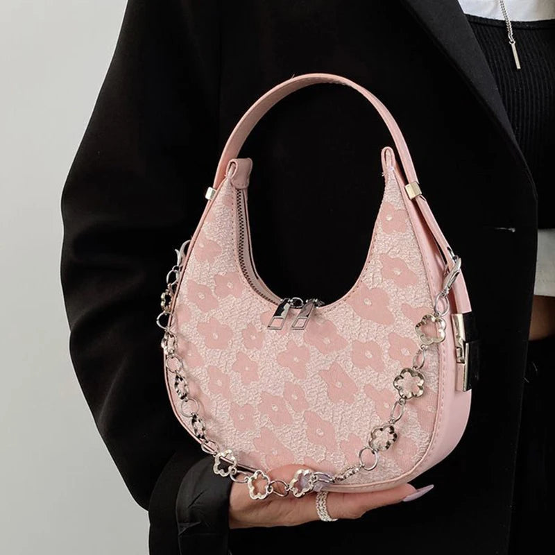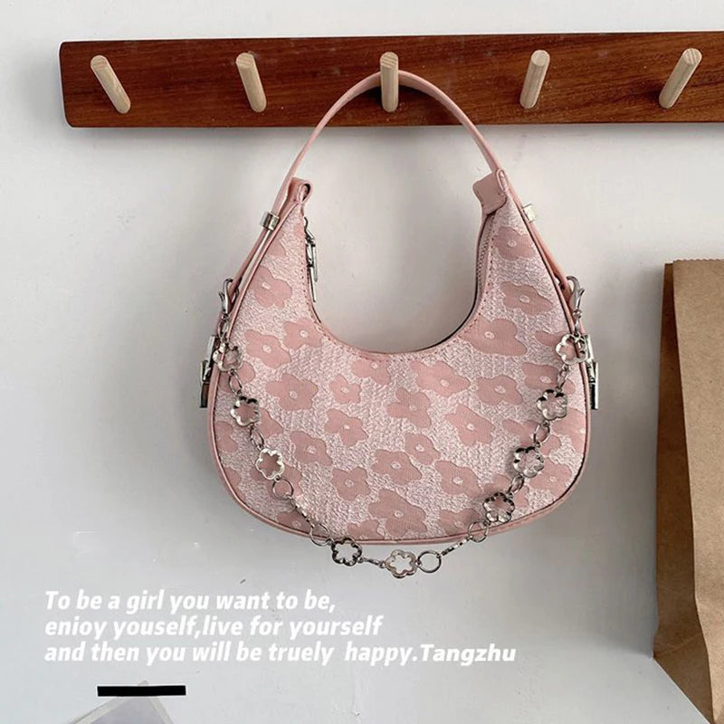 Summer Flower Underarm Bag Chains Shoulder Bag Sweet Girls Half-moon Handbag