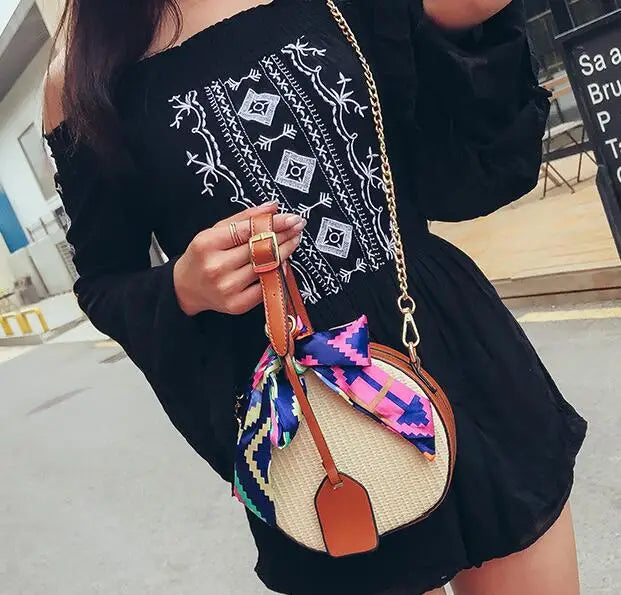 Summer Round Straw Beach Bag Portable Beach Bag