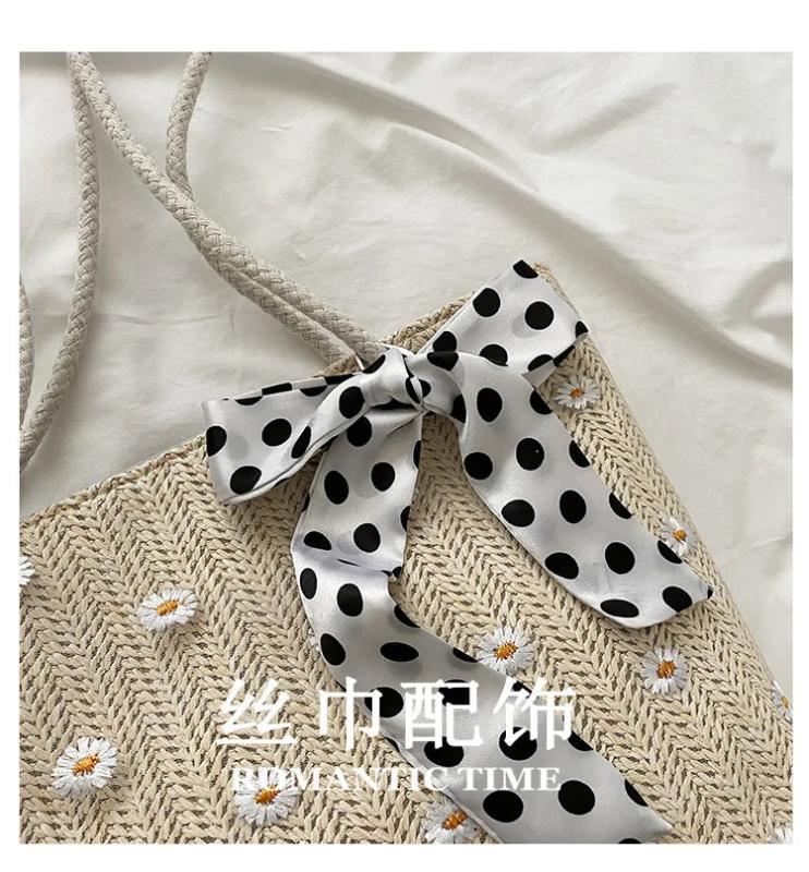 Stay stylish with this summer straw woven shoulder bag featuring a beautiful flower lace ribbon design. Perfect for the beach or casual outings, this bag offers a large capacity for all your essentials.
