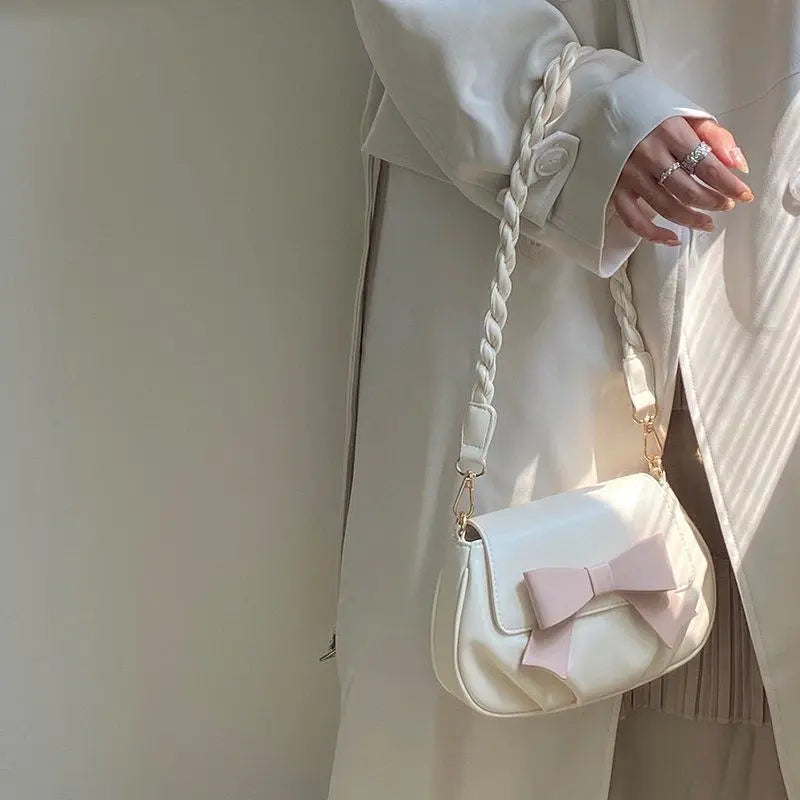 Sweet Bow Shoulder Bag Women Crossbody Soft PU Leather Handbag