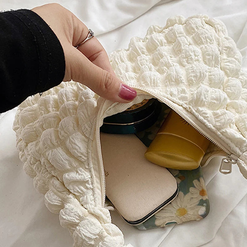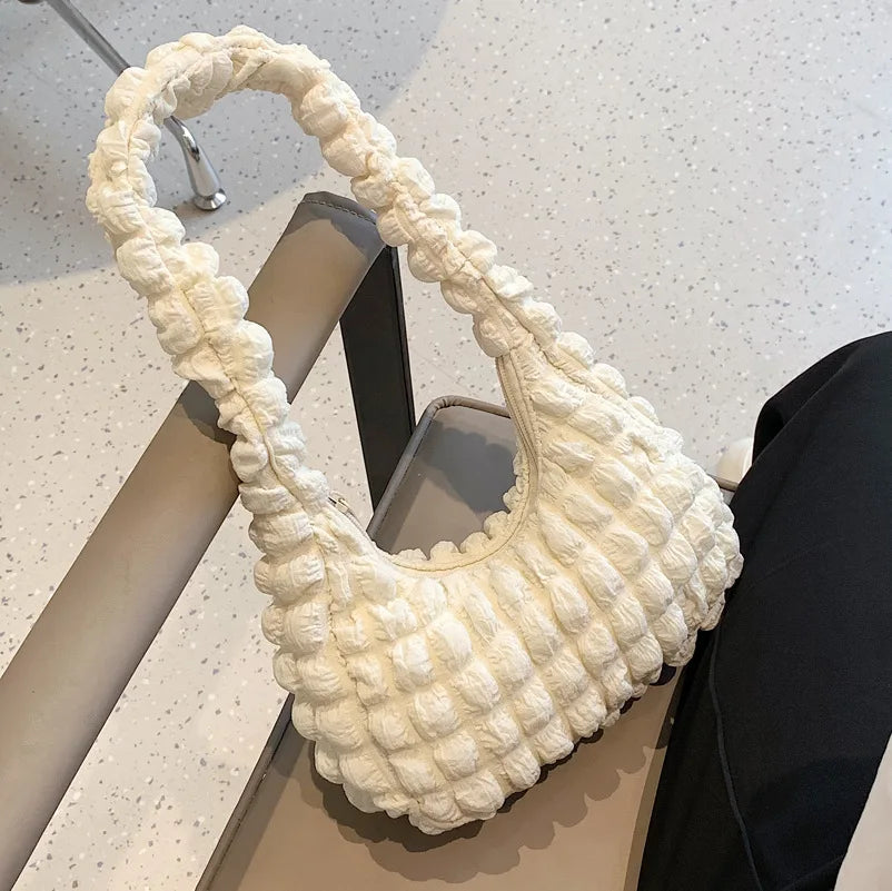 Stay stylish with this bubble underarm bag, perfect for summer days. Designed for women, this shoulder bag is a sweet girls clutch that can also be used as a shopping tote or armpit purse.