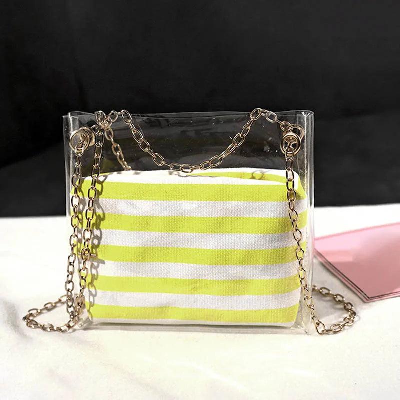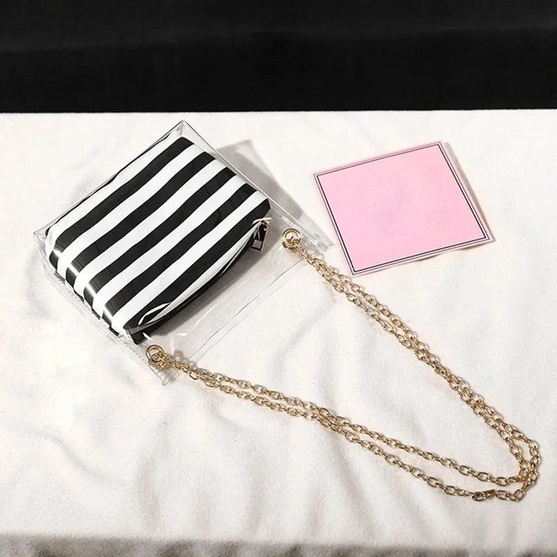 Sweet Women Shoulder Bag PVC Transparent Handbag Striped Purse Lady's Bag