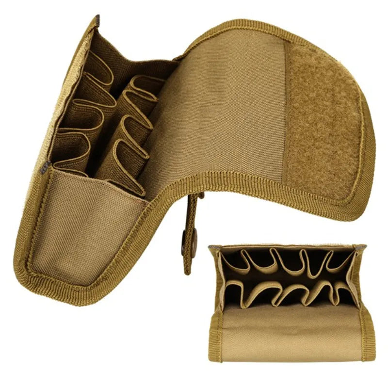 This waist bag is made of durable 600D Nylon and features 10-hole design for storing ammo. It can be attached to MOLLE compatible gear for easy access.