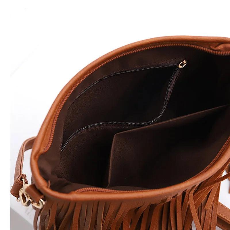 Tassel Nubuck Leather Ladys Crossbody Shoulder Bag Solid Satchel