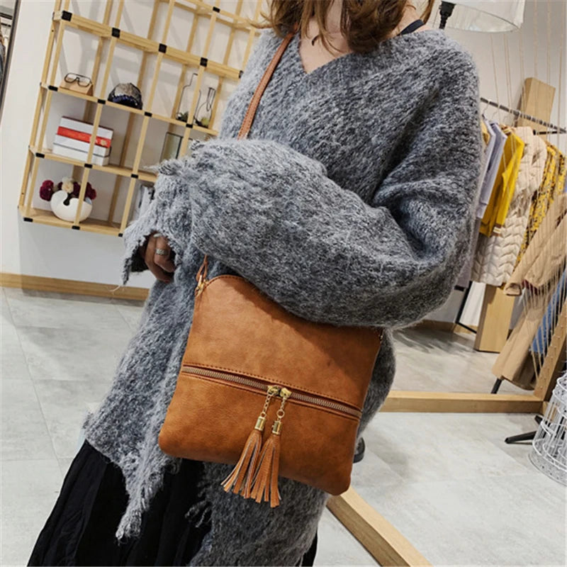 This stylish women's messenger bag features a tassel design and can be worn as a shoulder bag or crossbody handbag. Perfect for everyday use.