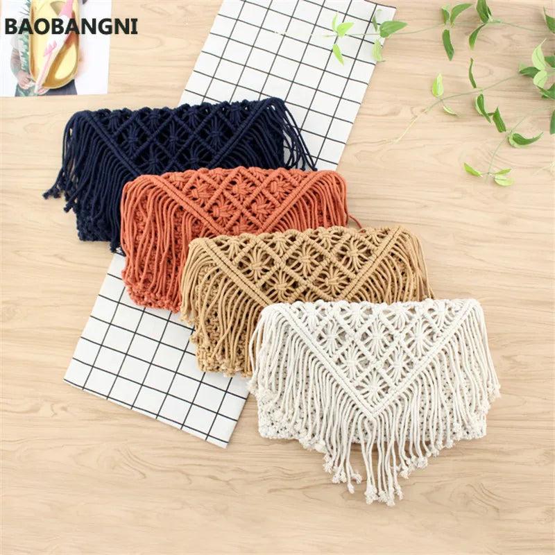 Tassel Straw Beach Bag Large Clamshell Hand-Woven Cotton Messenger Bag