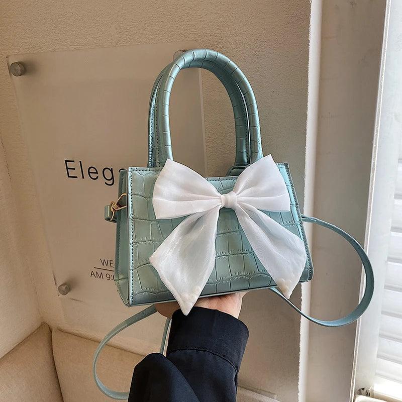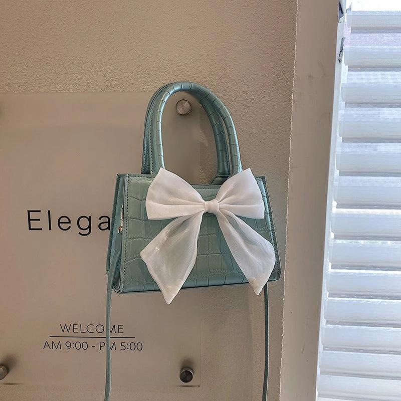 Texture Bow Handbag Solid Women's Shoulder Messenger Bag