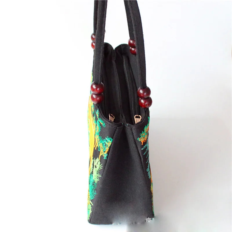 Thai Style Elephant Handbag Embroidered Canvas Shoulder Bag
