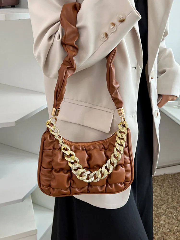 This trendy handbag features a thick chain design and pleated detailing, perfect for women who love a stylish accessory for daily use.