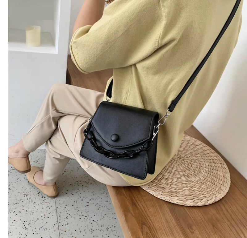 Stay trendy with this solid small crossbody bag made of PU leather. Perfect for summer outings, it features a thick chain strap for a stylish look.