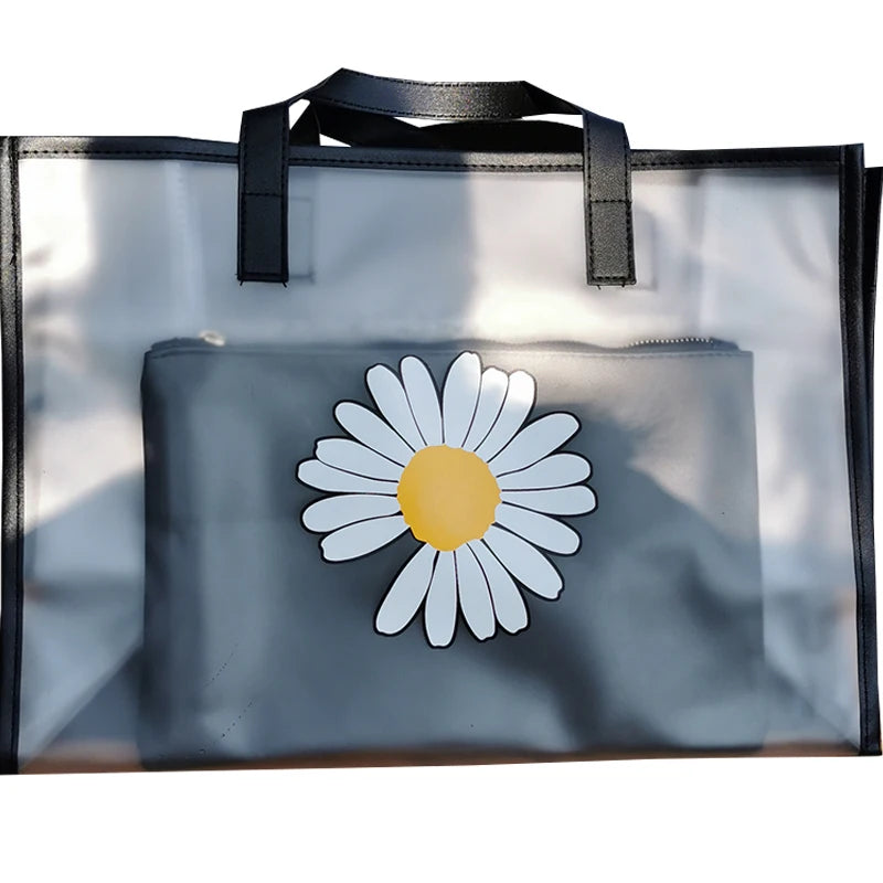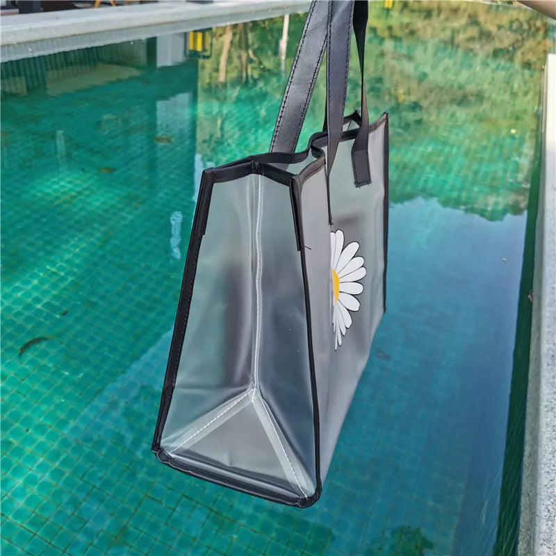This PVC PU transparent cosmetic bag with a lovely flower design is perfect for women and girls. It is waterproof and ideal for storing makeup and toiletries during travel.