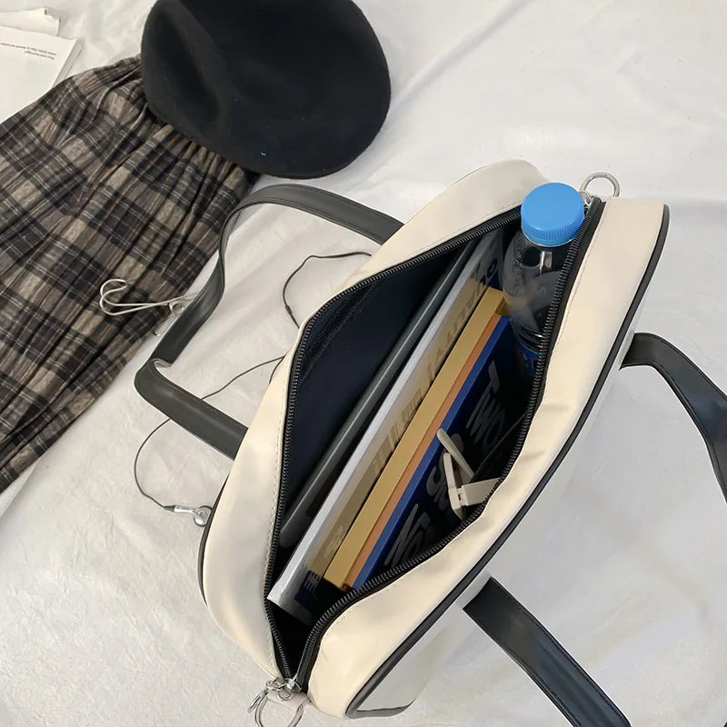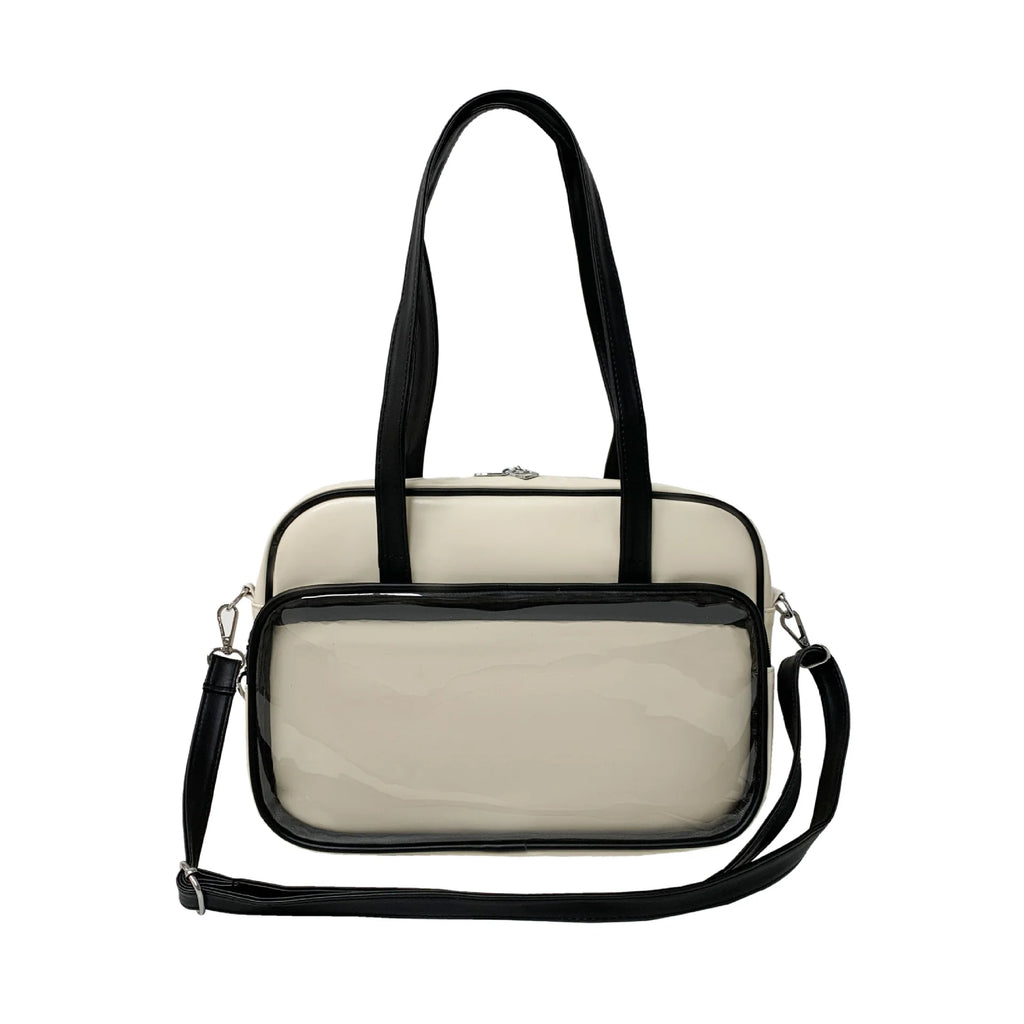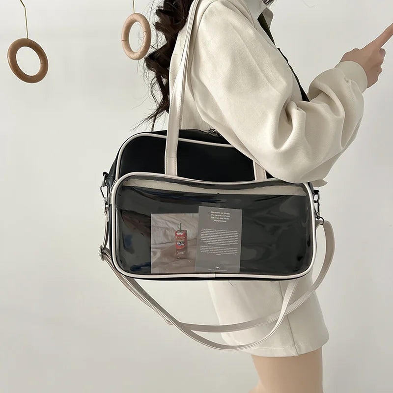 Stay stylish and organized with this chic transparent tote bag made of soft leather. Featuring a large capacity and single shoulder messenger design, this handbag is perfect for any occasion.