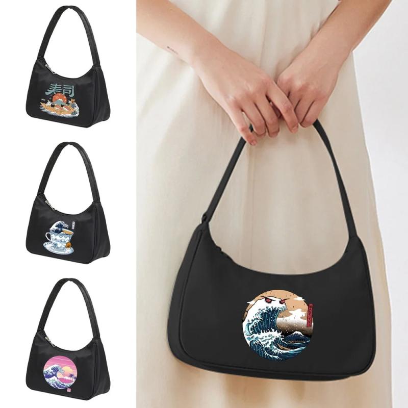 This underarm bag for women features a retro street handbag design with a wave print pattern. Perfect for casual outings and commuting, it offers a stylish and organized way to carry your essentials.