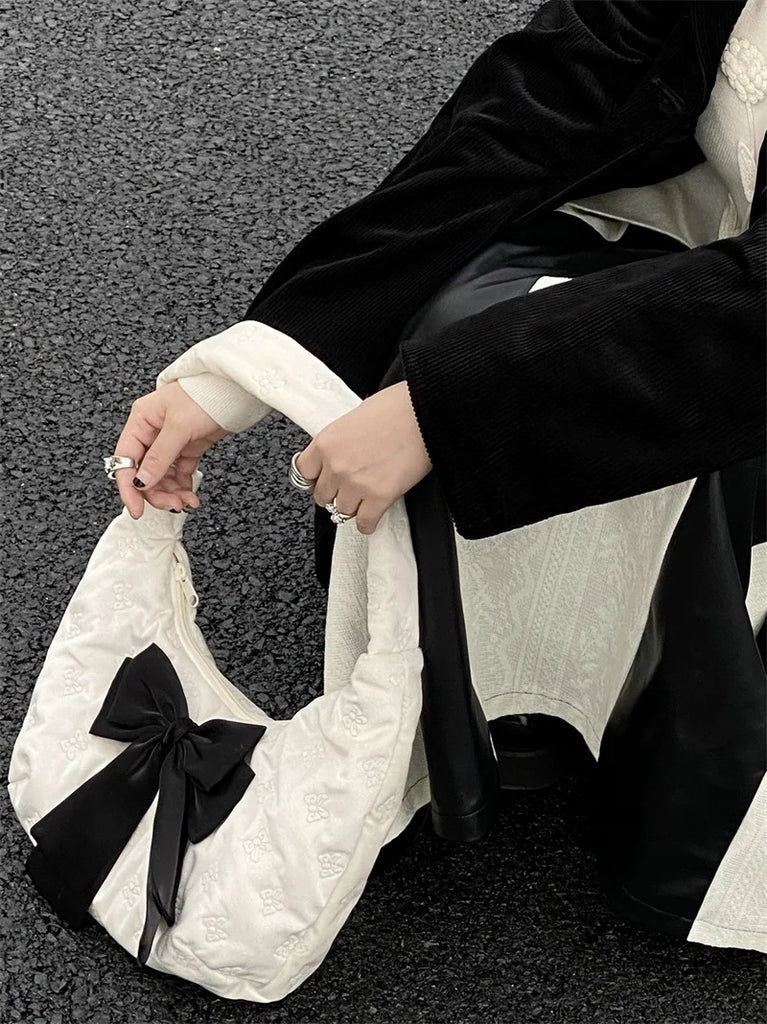 Velvet Bowknot Half Moon Shoulder Bag for Women