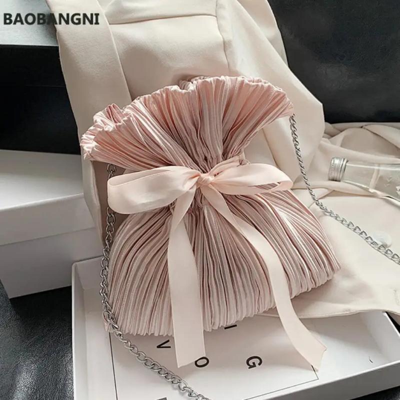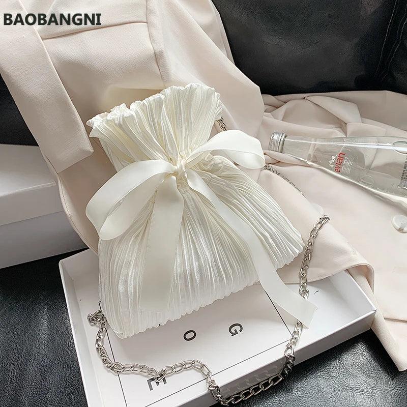 Velvet Girl Bow Bucket bag High-quality Chain Shoulder Messenger Bag