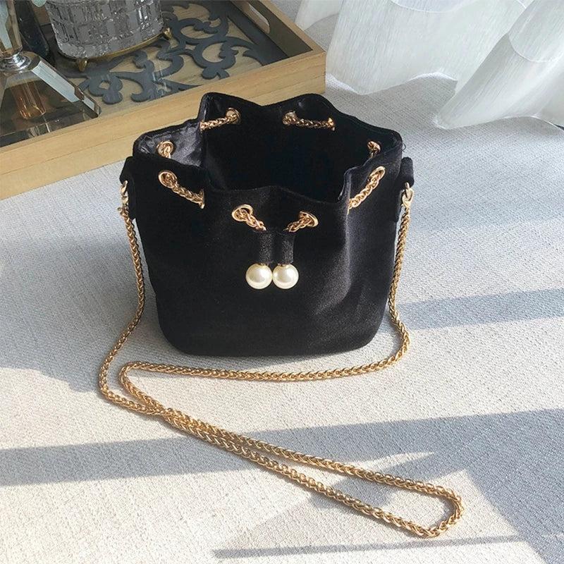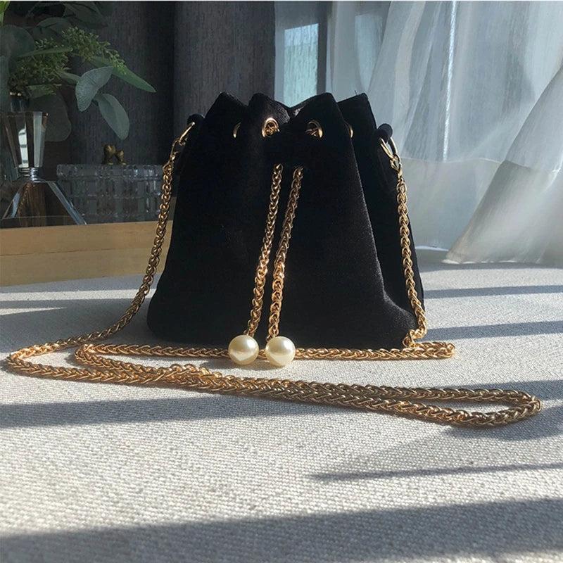 Elevate your style with this stunning Velvet Shoulder Bag featuring a metal chain strap and large capacity bucket design. Perfect for carrying all your essentials in style.