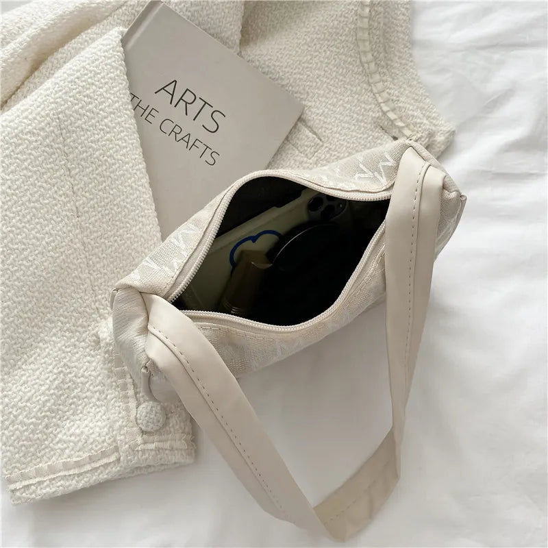 This vintage canvas underarm bag is perfect for carrying your essentials in style. It features a zipper closure and a shoulder strap for easy carrying.