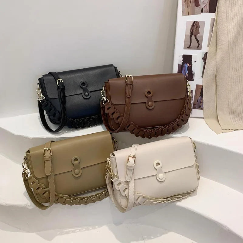 Vintage Chains One Shoulder Bags High Women PU Leather Casual Handbags