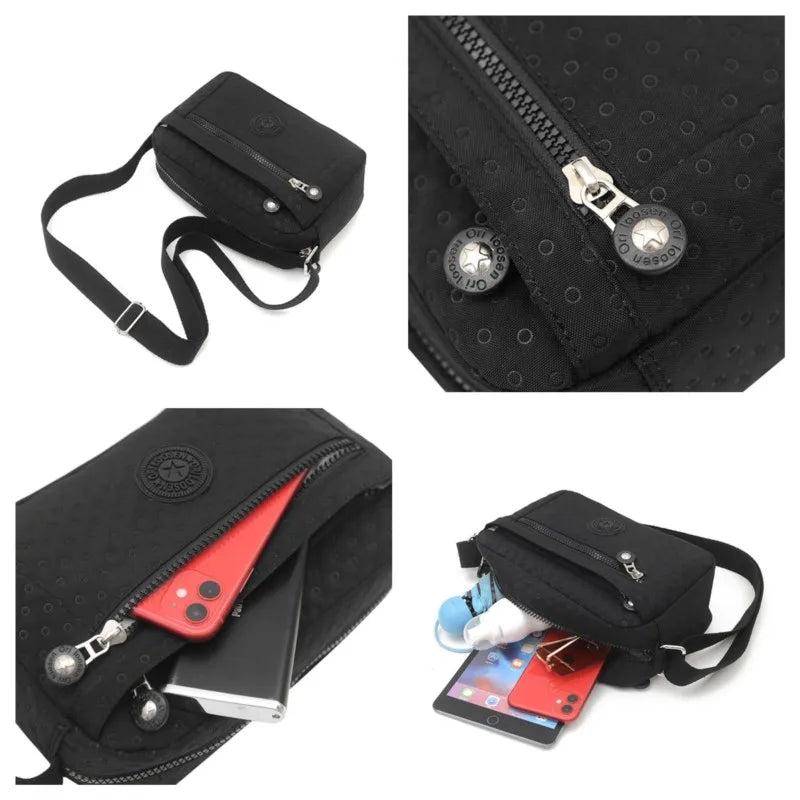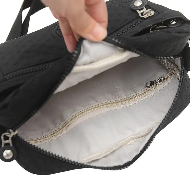 Elegant and functional crossbody bag made of high-quality nylon material. Perfect for everyday use, shopping, or travel. Features a spacious interior and multiple pockets for easy organization.